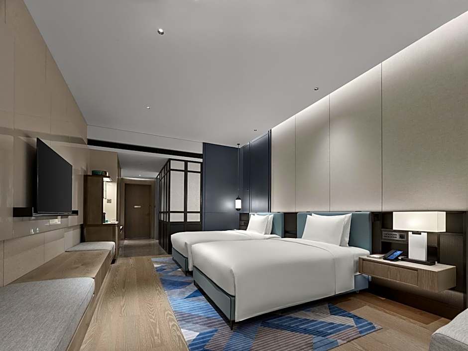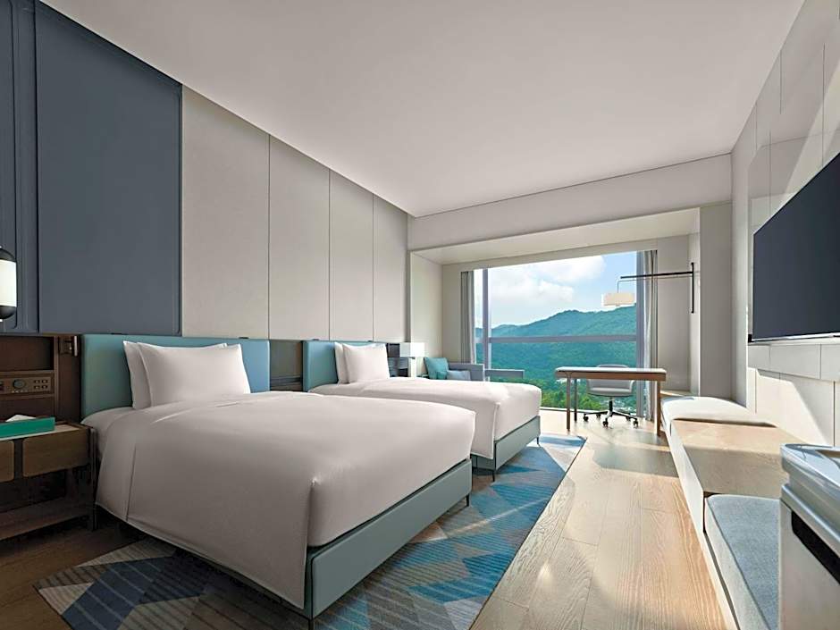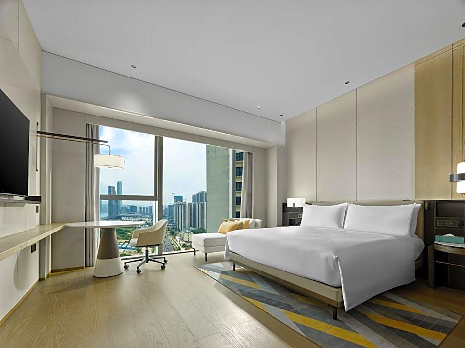 Floor-to-ceiling windows offering Macau sea view from bedroom . Enjoy your favorite shows on our 55 inches TV, Intelligent Closestool, have a relaxing bath in the Cast Iron Enameled Bathtub. This room offers: